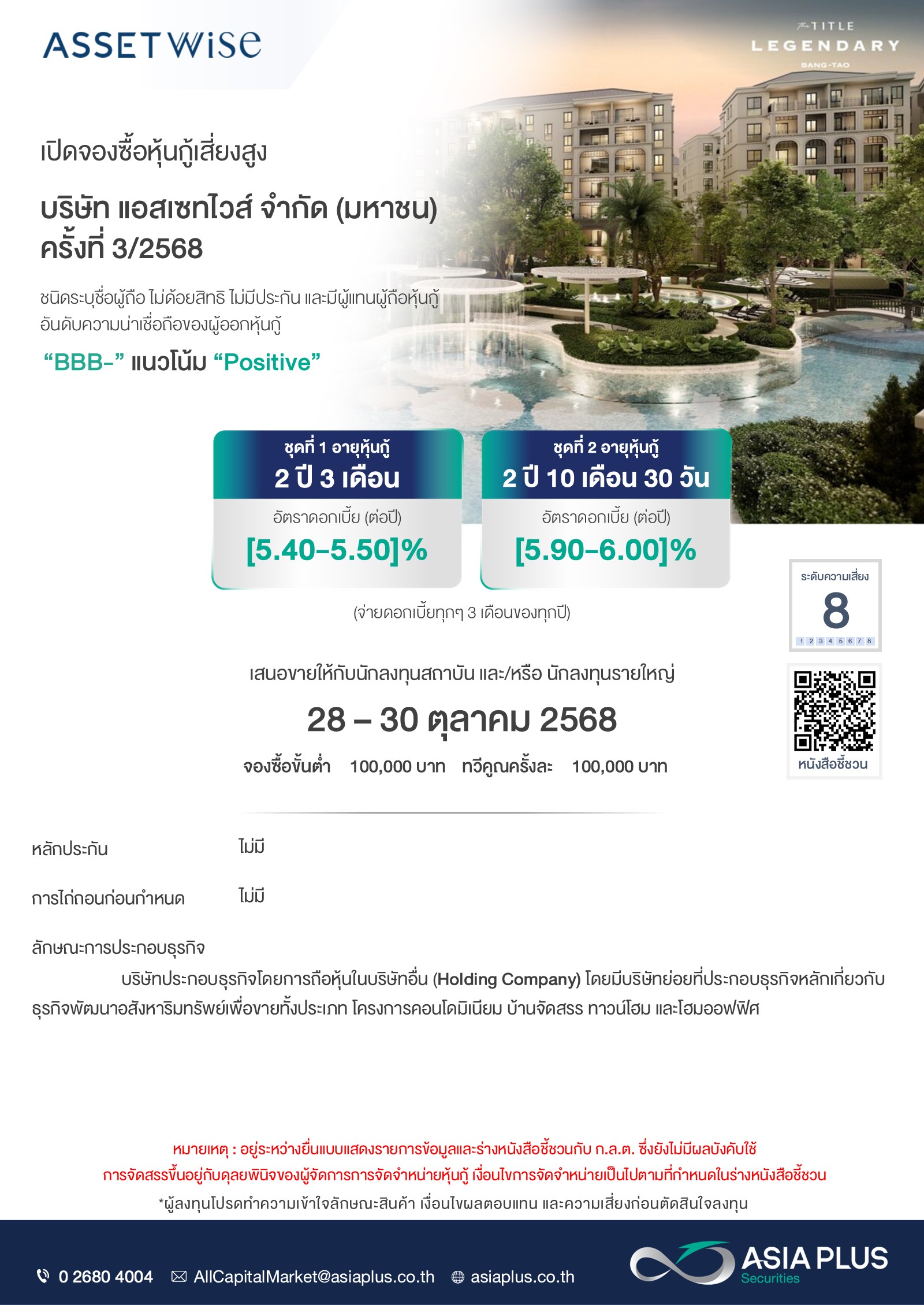 เปิดจองหุ้นกู้เสี่ยงสูง บริษัท แอสเซทไวส์ จำกัด (มหาชน) - ASW