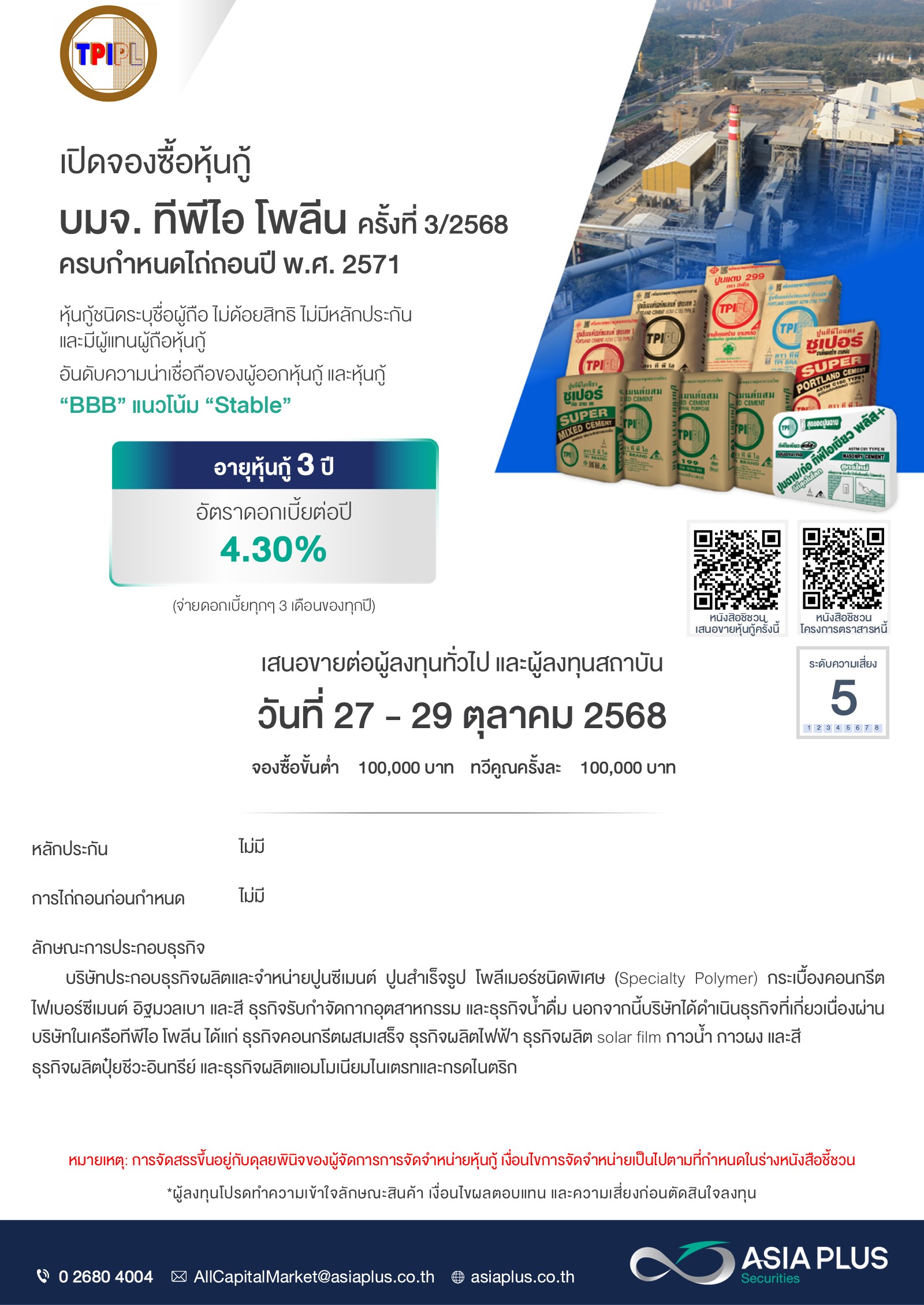 เปิดจองหุ้นกู้ บริษัท ทีพีไอ โพลีน จำกัด (มหาชน) - TPIPL