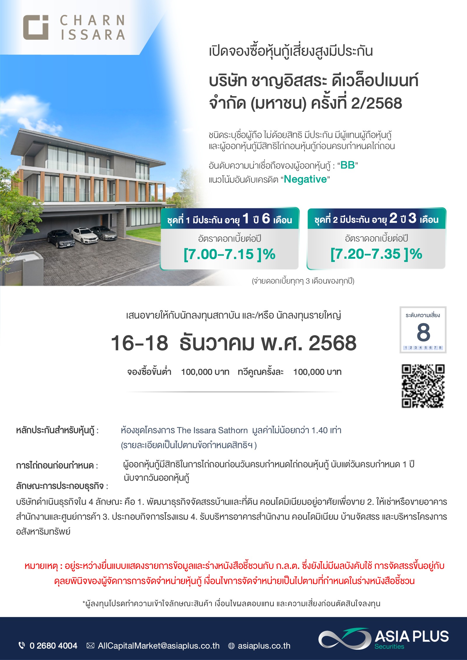เปิดจองหุ้นกู้เสี่ยงสูงมีประกัน บริษัท ชาญอิสสระ ดีเวล็อปเมนท์ จำกัด (มหาชน) - CI